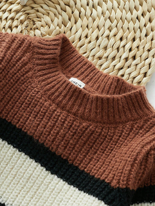 Ribbed Knit Sweater for Young Boys Autumn/Winter Long-Sleeve Pullover