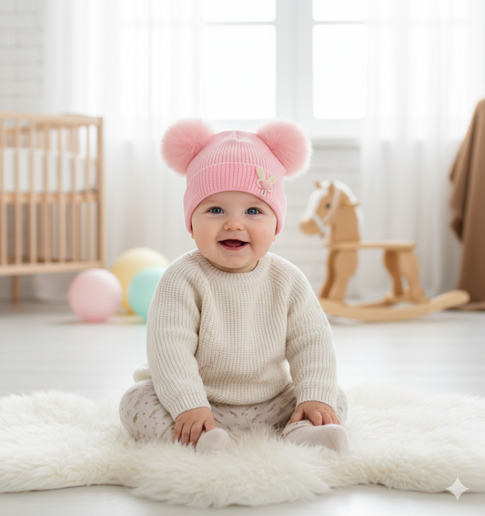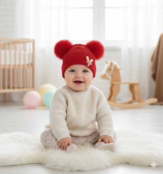 Children's knitted hat with pom poms. -S