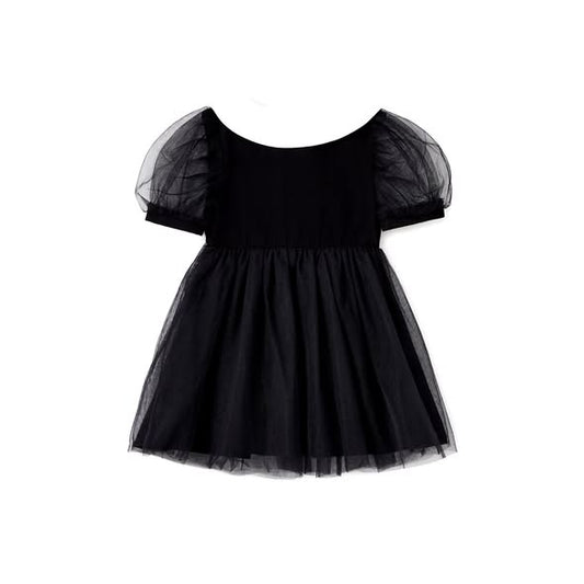 Baby Girl Dobby Mesh Panel Flounce short Sleeve Dress
