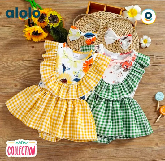 Baby Checkered Bow Blouse & Pants two piece set with headband