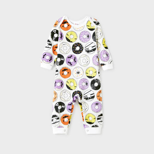 Skeleton Pattren Halloween Letter & Bat Print JunpSuit
