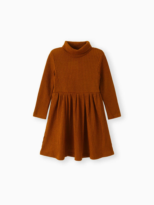 winter Girl Turtleneck Solid Color Ribbed Long-sleeve Dress