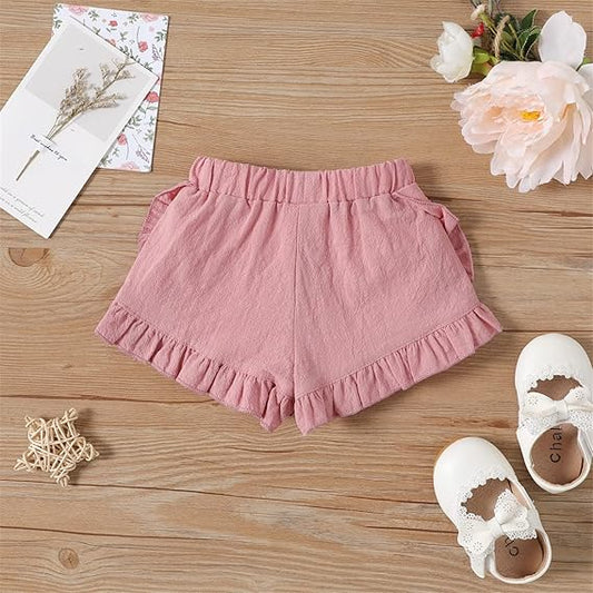 Cotton Solid Ruffle Trim Shorts