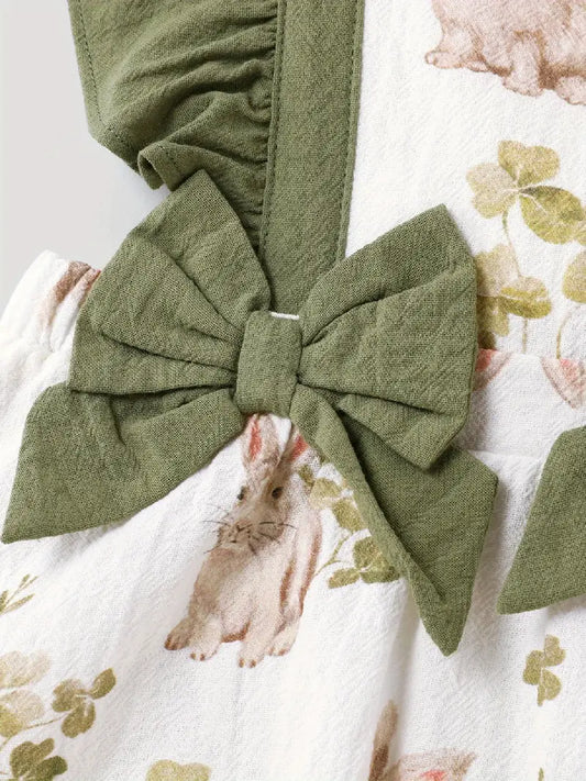 Baby Sweet Leaves Print Smocked Slip romper with bow knot