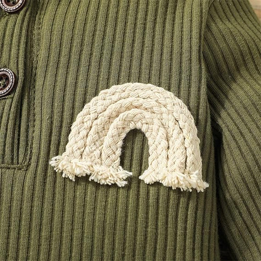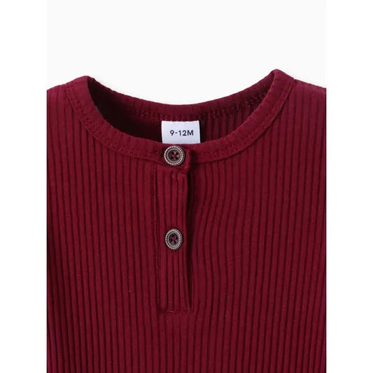 Boy/Girl Rainbow Pattern Waffle Long-sleeve Pullover Sweatshirt Burgundy