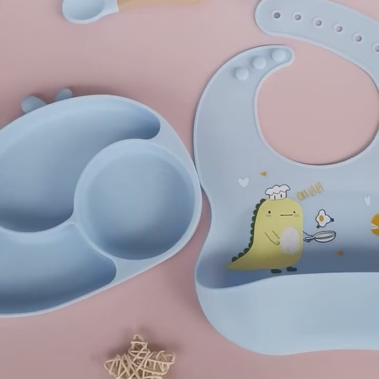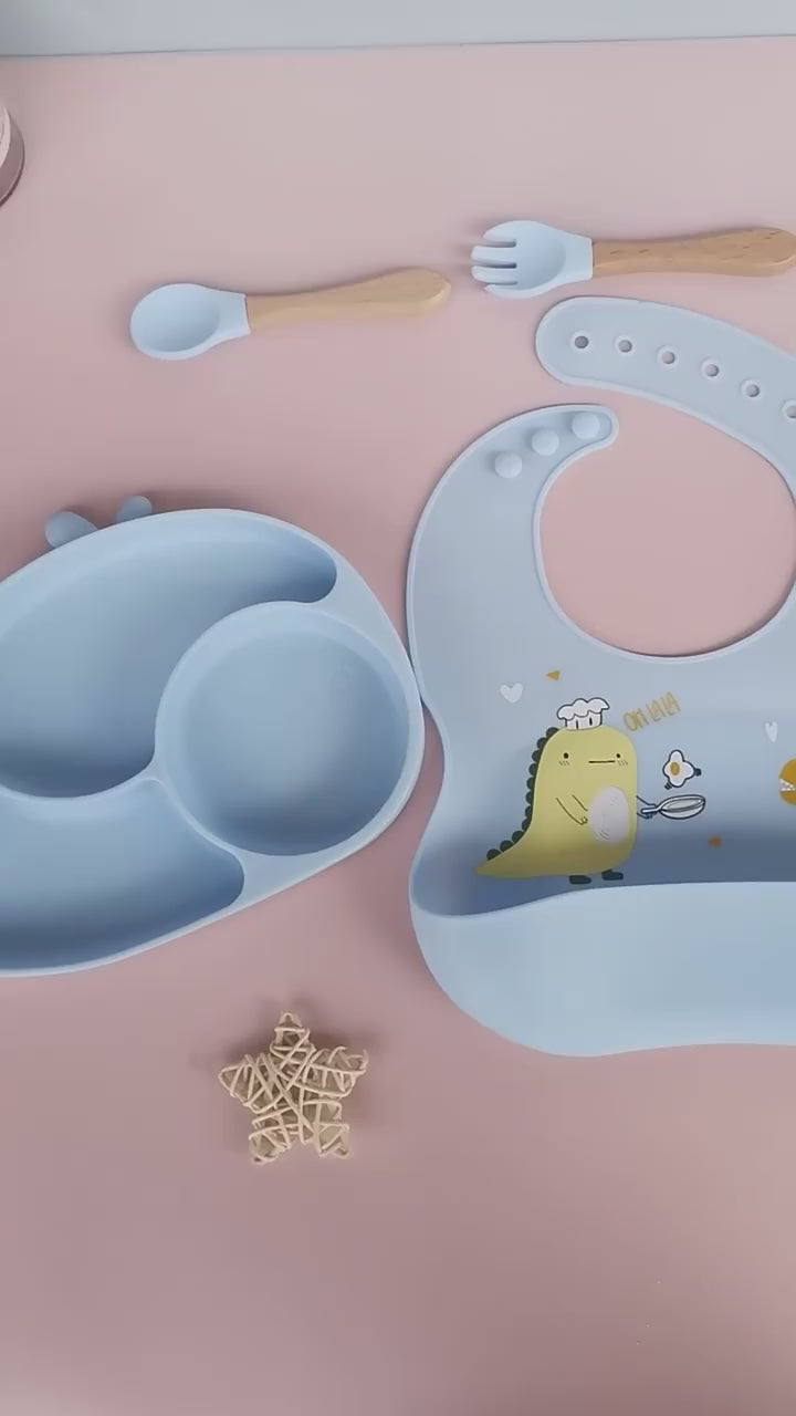 baby silicone tableware set with cartoon dolphin dinner set 9pieces -H