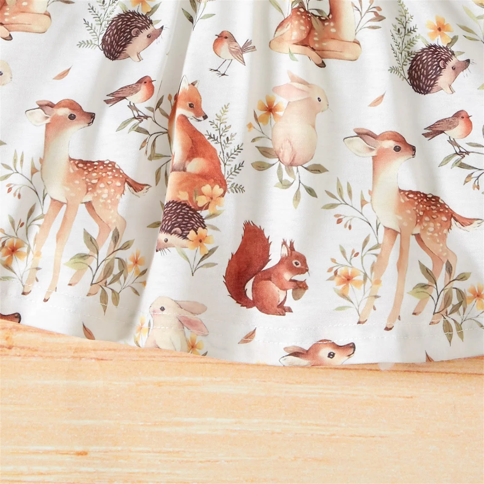 NewBorn Dress Baby Girl Clothes New Born Babies Kids Birthday Party Dress Forest Animals Print Long-sleeve Overalls