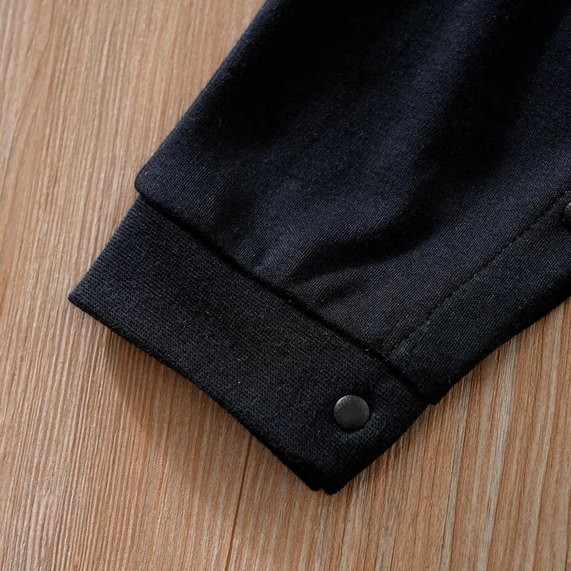 •Product features: Gentleman design. •Fabric characteristics: Moderate..• Thickness: Moderate.• Sheer: Not see-through.•Piece of product: 1 bodysuit.•Neckline: Round.•Sleeves: Long.•Style: Classic, Gentleman Design. •Fit: Moderate.•Length: Standard.•Source of goods: Imported.•Supplier: PatPat.