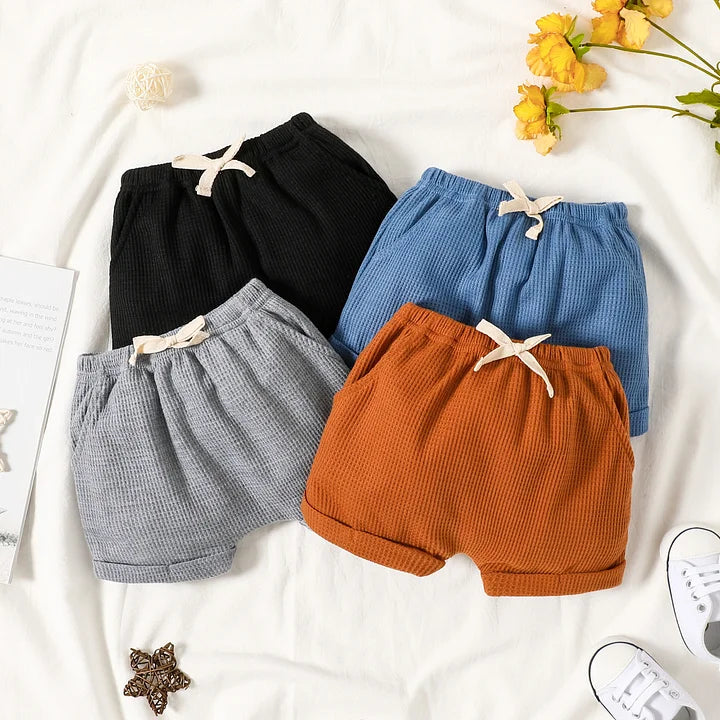 Baby Boy Solid Waffle Elasticized Waist Shorts with Pockets