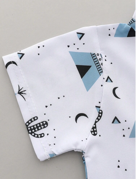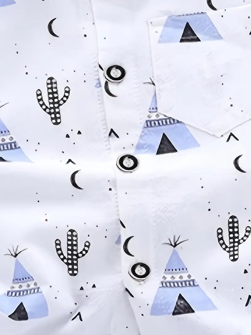 Baby Boy Summer Cartoon Printed Randomly Full-Collar Short Sleeve Shirt