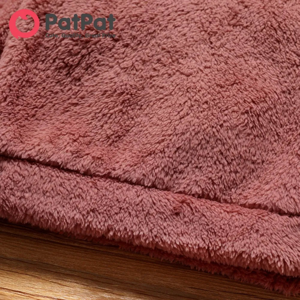 PatPat Toddler Girl Bowknot Design Fuzzy Hoodie Sweatshirt