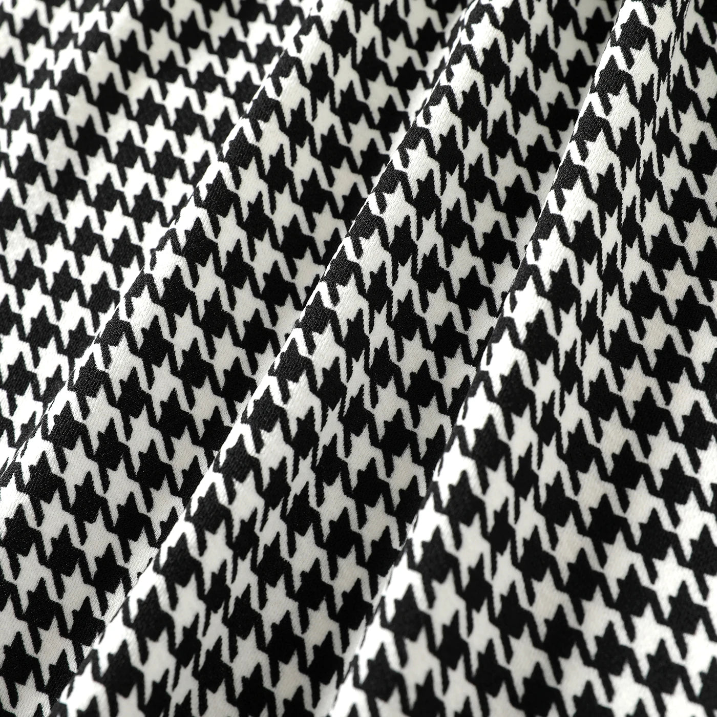 Faux-two Cable Knit Textured Houndstooth Splice Long-sleeve Dress