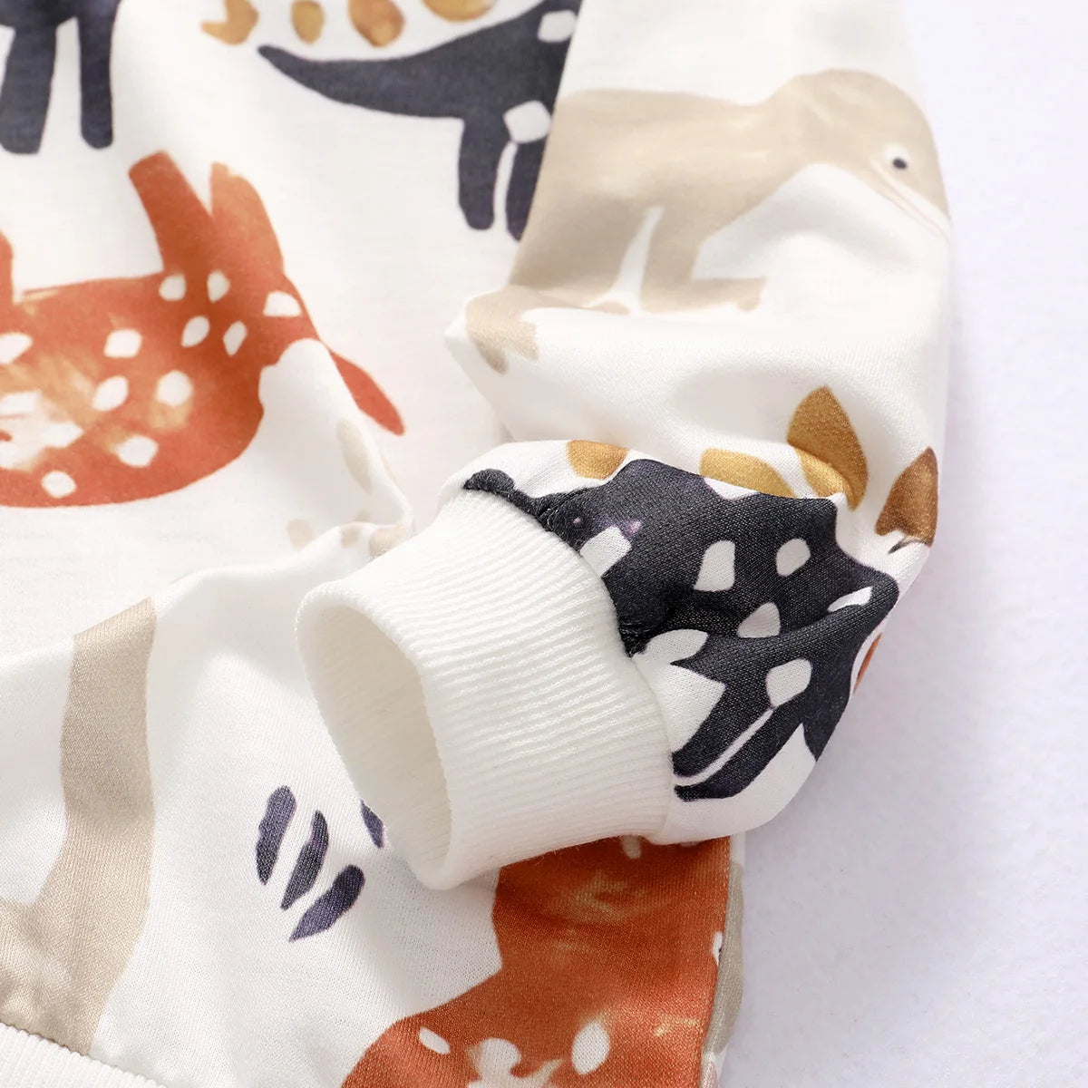 Cartoon Dinosaur Print Long-sleeve Pullover Sweatshirt