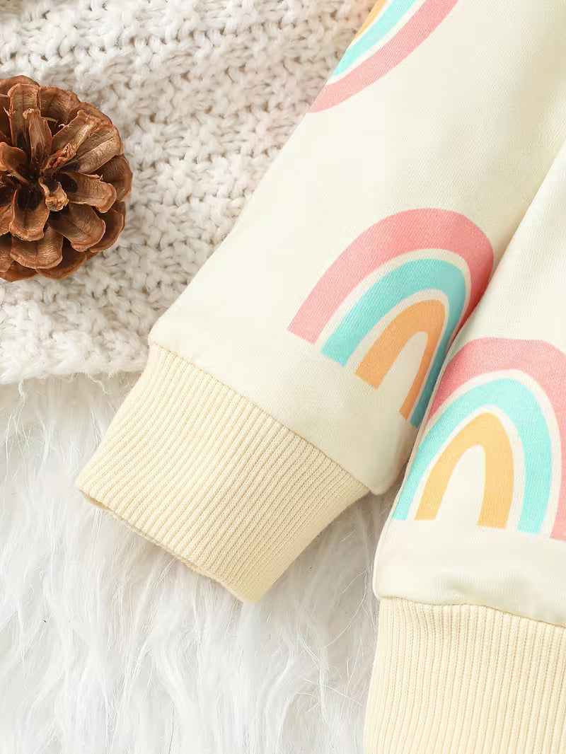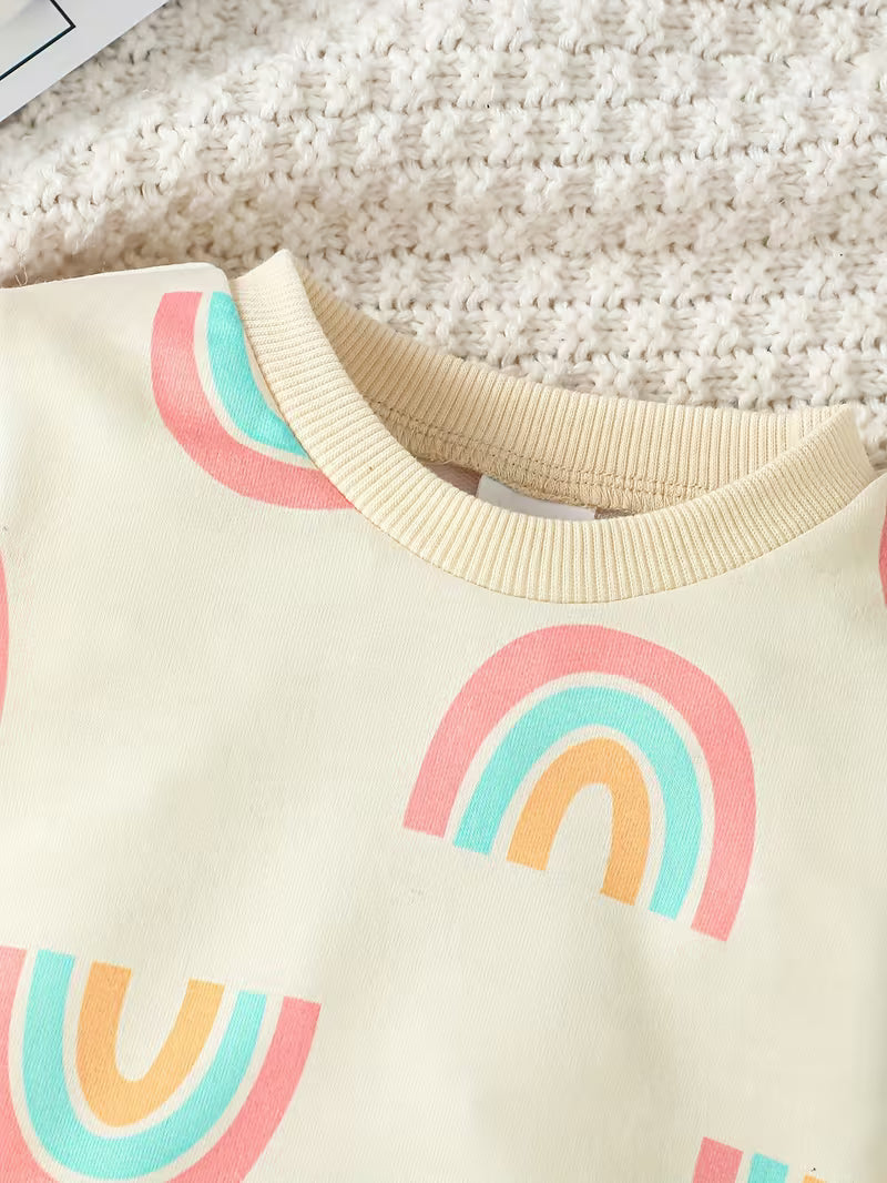 Casual Sweatshirt with Round Neck and Rainbow Print for Baby Girl