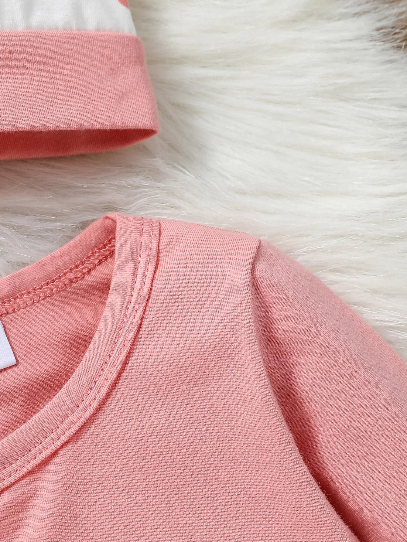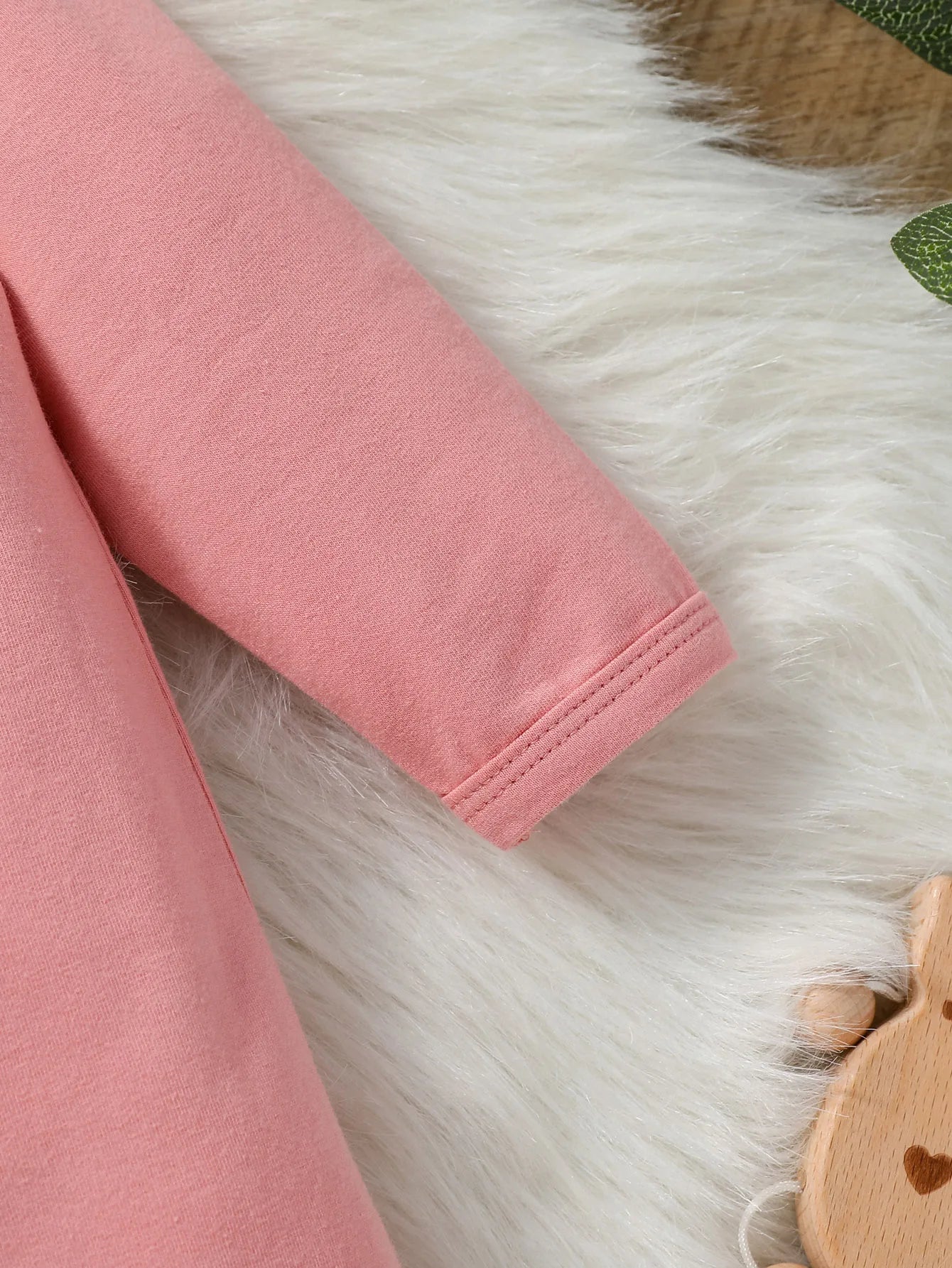 Cotton Long-sleeve Love Heart Print Footed Honey Comfort Jumpsuit with Hat