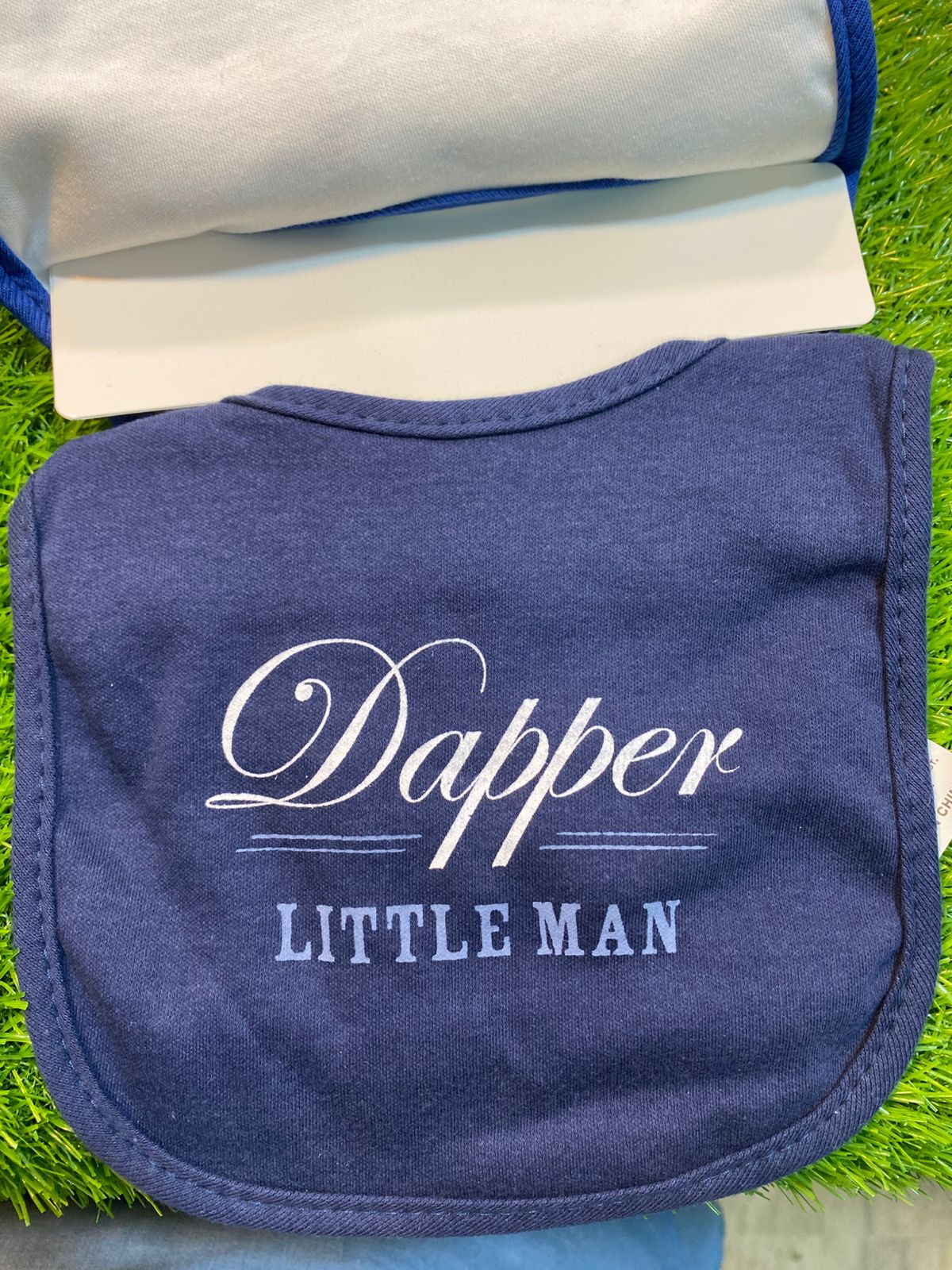 The set includes 2 pairs of fancy socks and 3 sets of bibs