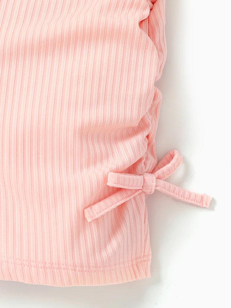 Girl Letter Print Drawstring Ruched Side Ribbed Cami Romper Pink