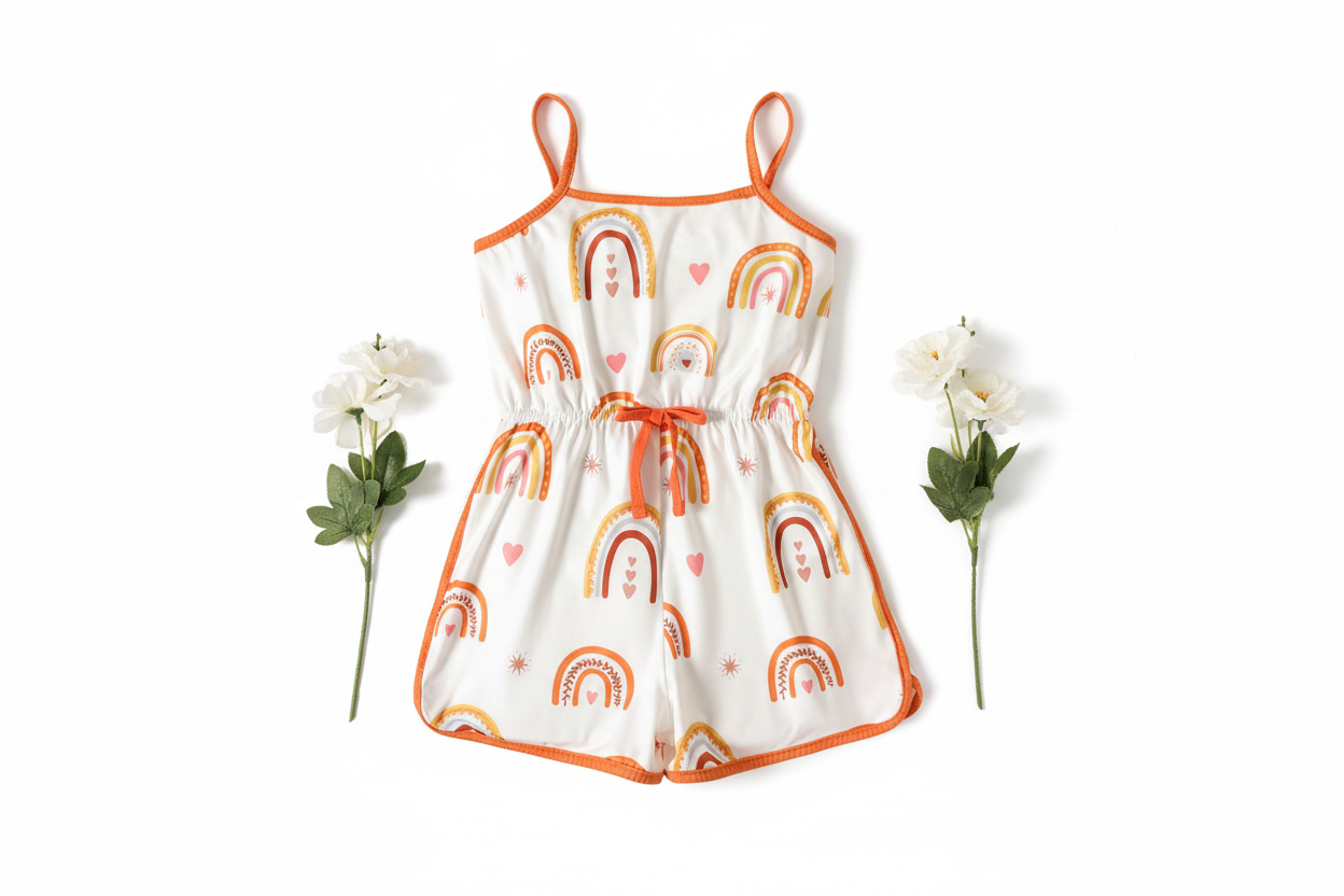 Girl Rainbow Print Bowknot Design Cami Romper Jumpsuit