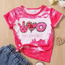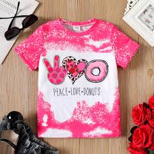 kid girl cartoon donut & victory print tie dye short sleeve t-shirt