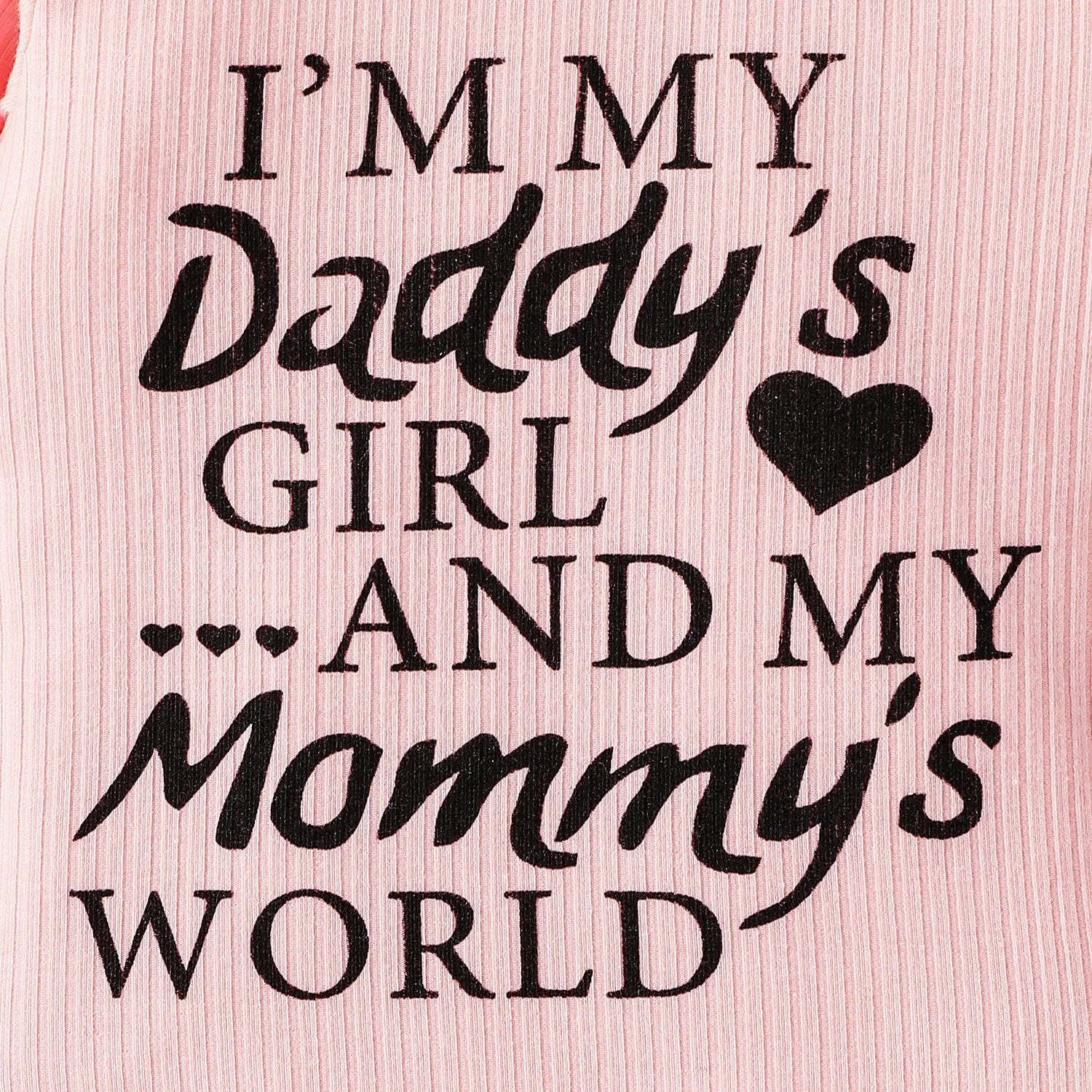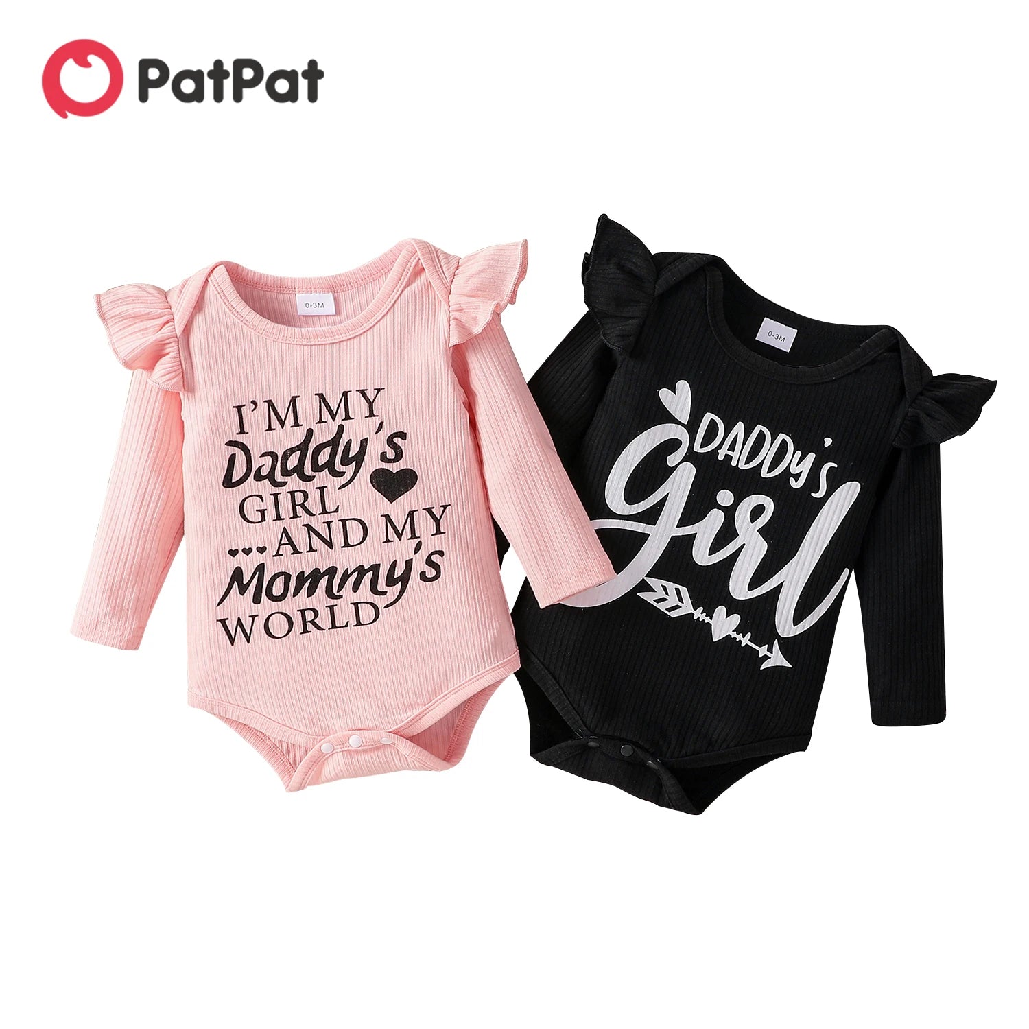 Baby Girl Letter Print Rib Knit Ruffle Long-sleeve Romper