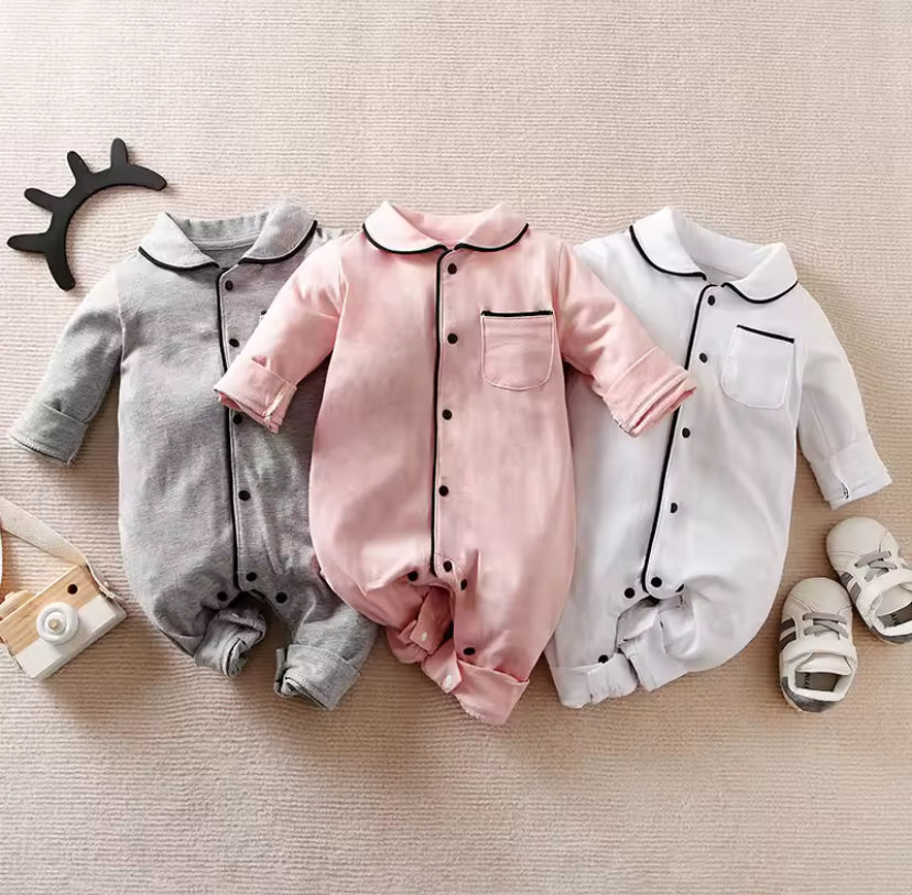 Newborn Jumpsuit Baby Clothes Spring Toddler Costume Boys Girls Solid long home wear Romper Pure Cotton Pajamas