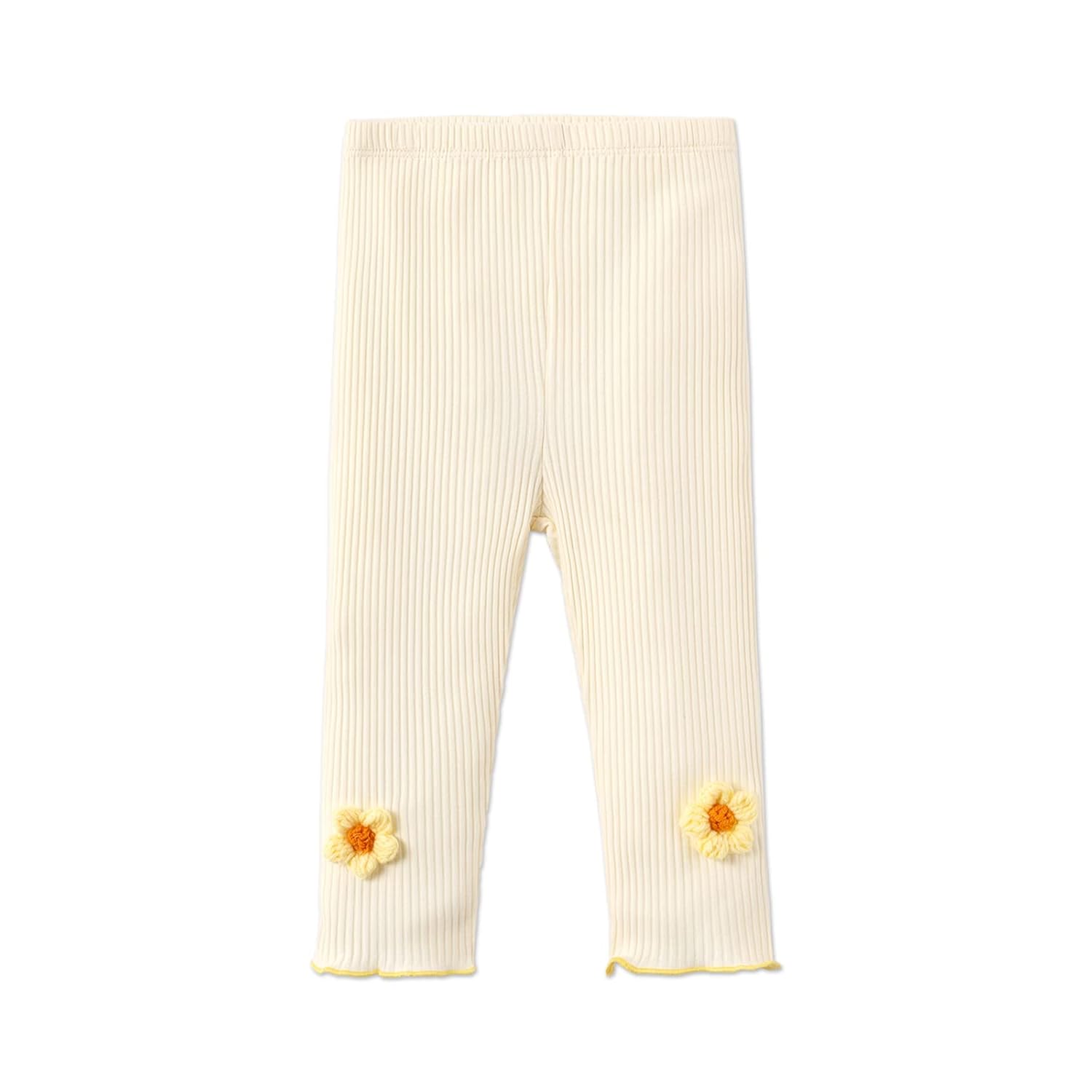 PATPAT Baby Girl Knit Cotton Flower Pants Solid Color Legging