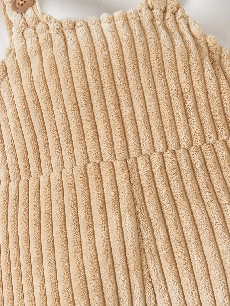 Solid Ribbed Fleece Overalls Kids Suspender Pants