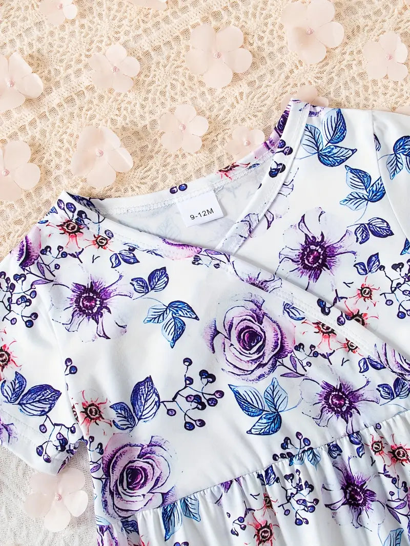 Toddler's sweet floral print outfit set for a charming autumn outing.