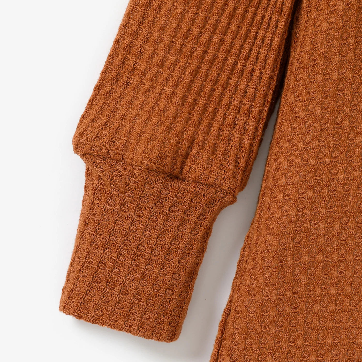 Solid Color Mock Neck Waffle Long Puff-sleeve Dress